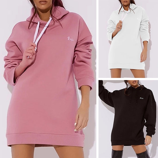 It is wise for you to slip into this sweatshirt dress when the days get cold! Solid color tone design