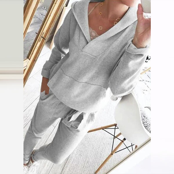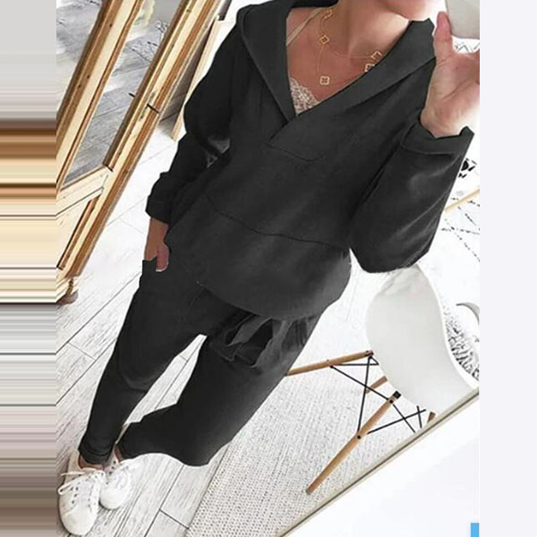 Fashion Solid Color Long Sleeve Hooded Sweatshirt + Pants Two-piece Set