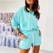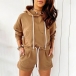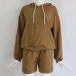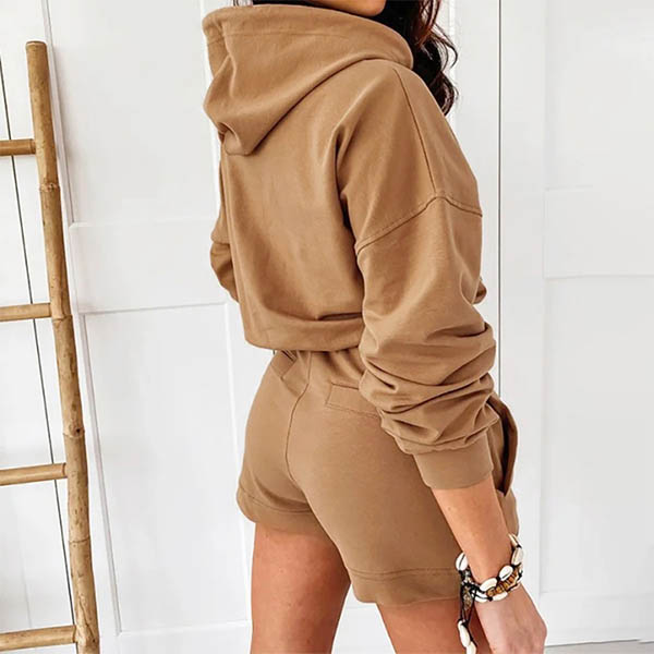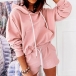 Fashion Solid Color Long Sleeve Hooded Sweatshirt + Shorts Two-piece Set