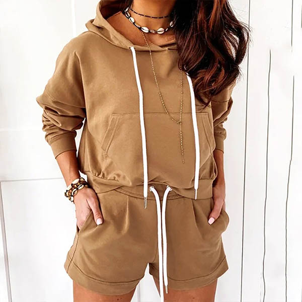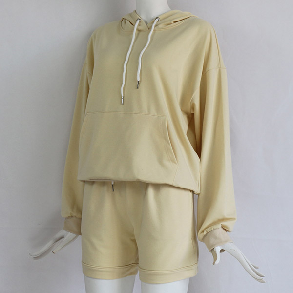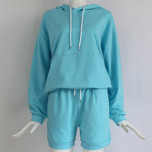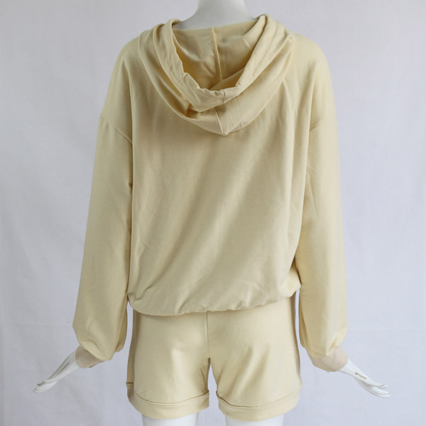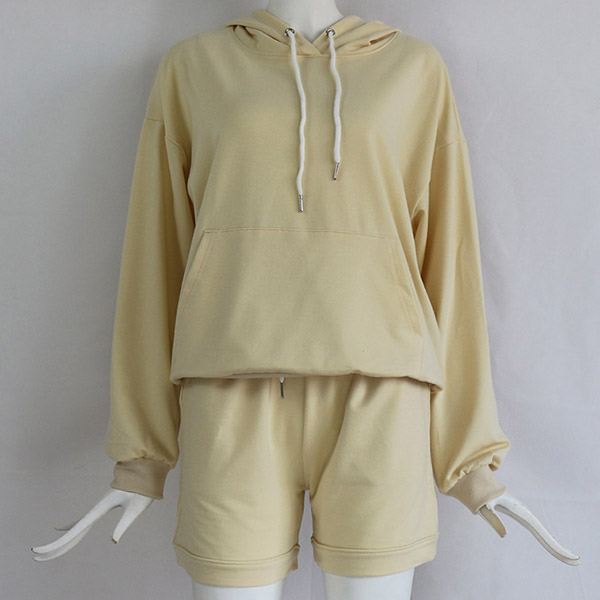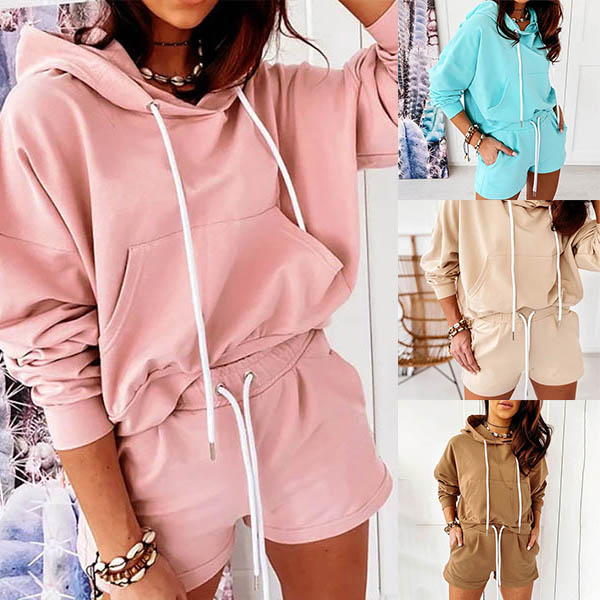 As for a simple,casual and relaxed daily style,you can have a try this two-piece set. Solid color style,including a long sleeve hooded silhouette and a shorts,this two-piece set can give you an utmost comfort with its soft and breathable fabric. It is perfect fit for your casual days and sports time.