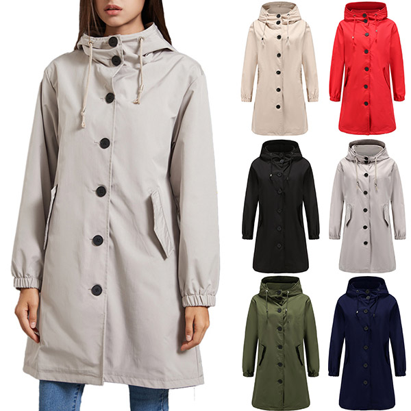 Fashion Solid Color Long Sleeve Hooded Waterproof Outdoor Jacket Windbreaker