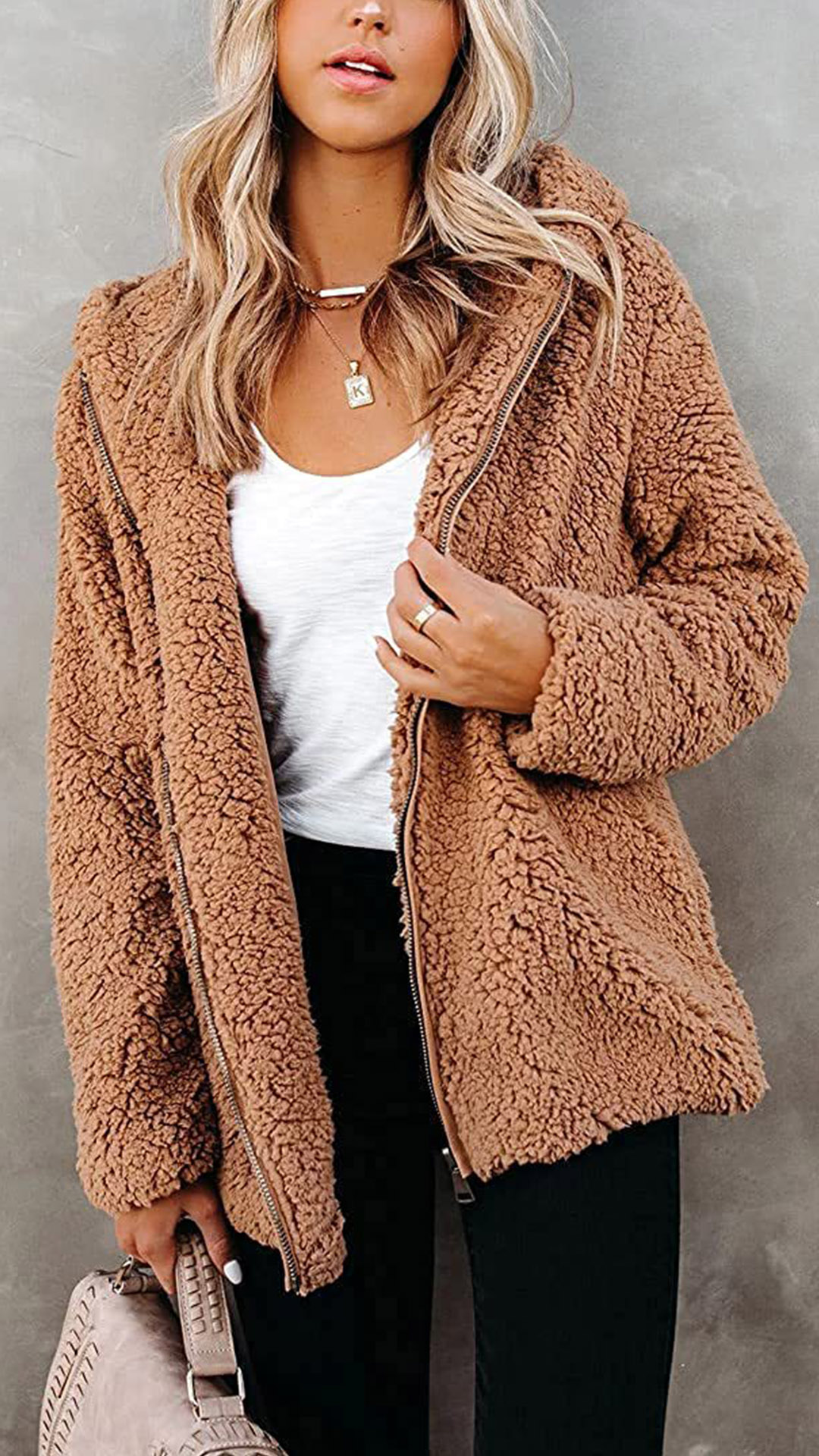 When the days get cold,you can just slip into this coat to stay warm and stylish. Solid color style,finished with long sleeve,hooded silhouette and front-zipper closure,simple,classic yet stylish. And the soft,cozy plush fabric can ensure you a warm and comfortable day. Your perfect choice in these chilly days.