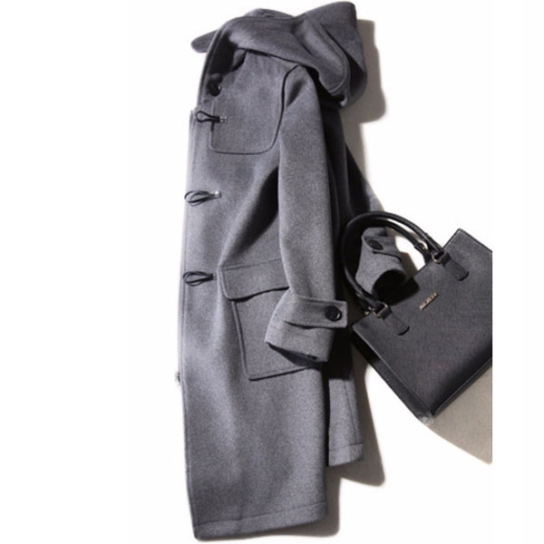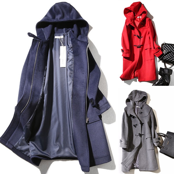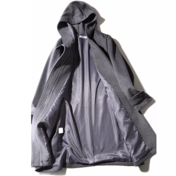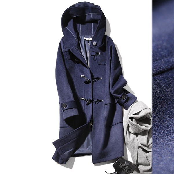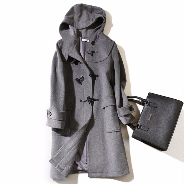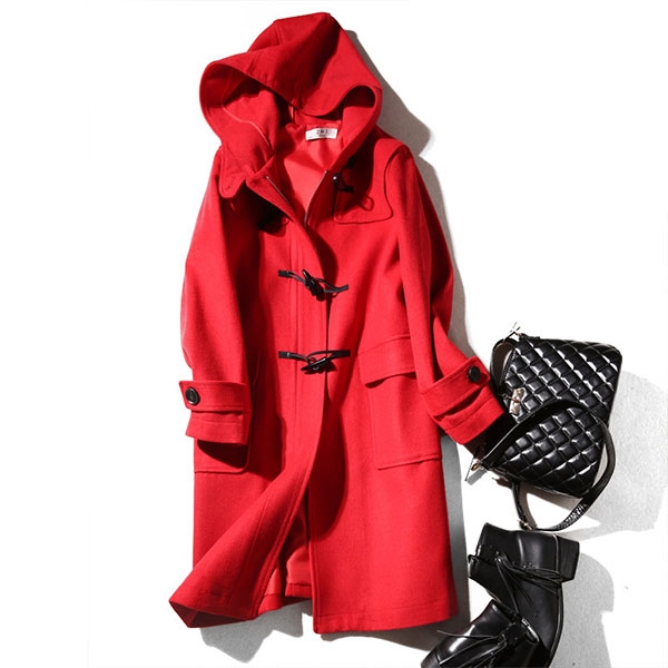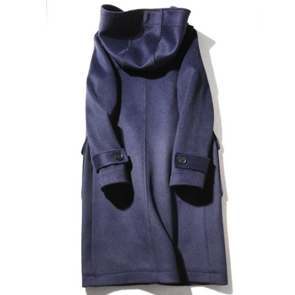 the hooded silhouette design can keep you warm. And the horn button design will lend you a dash