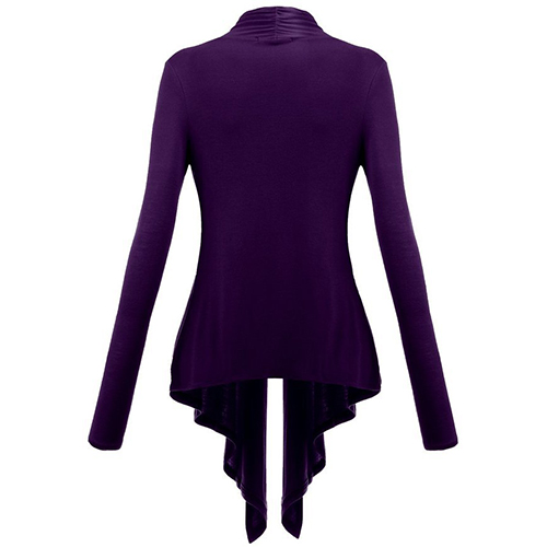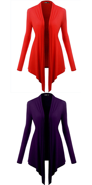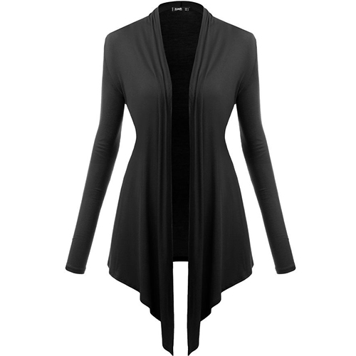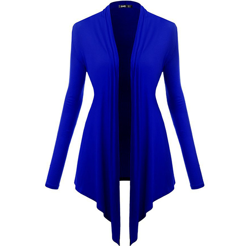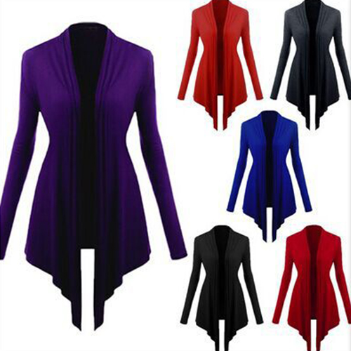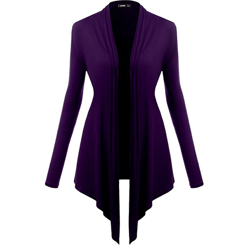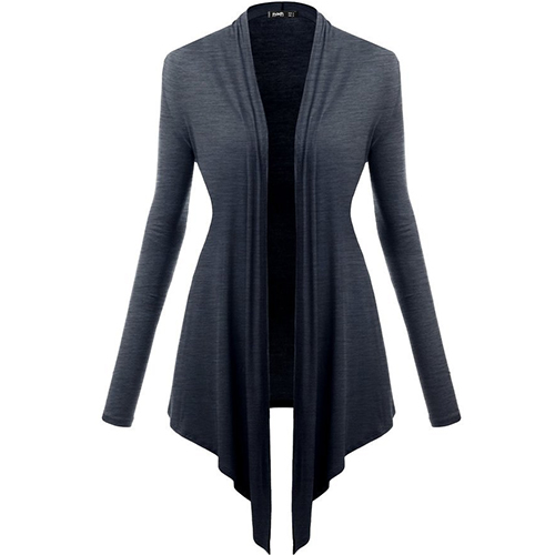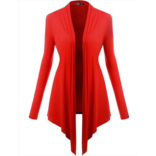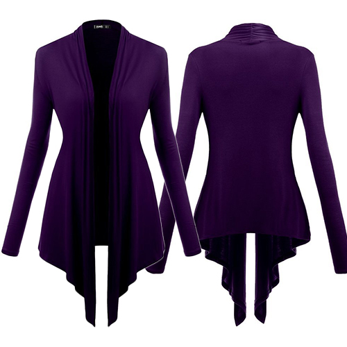 solid color style,outfitted with long sleeves,an open-front and an irregular hem,chic and