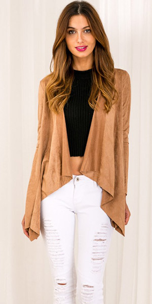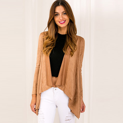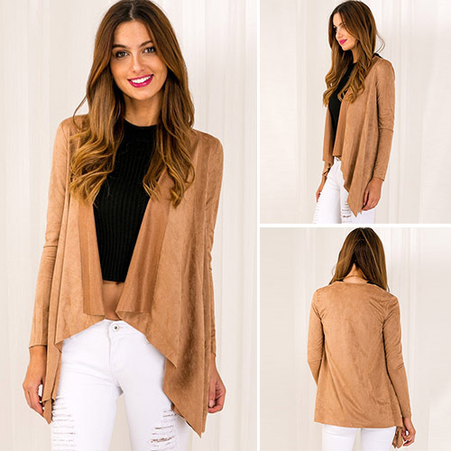 It's completed with an open-front, long sleeves and irregular hem design. It is time to update your