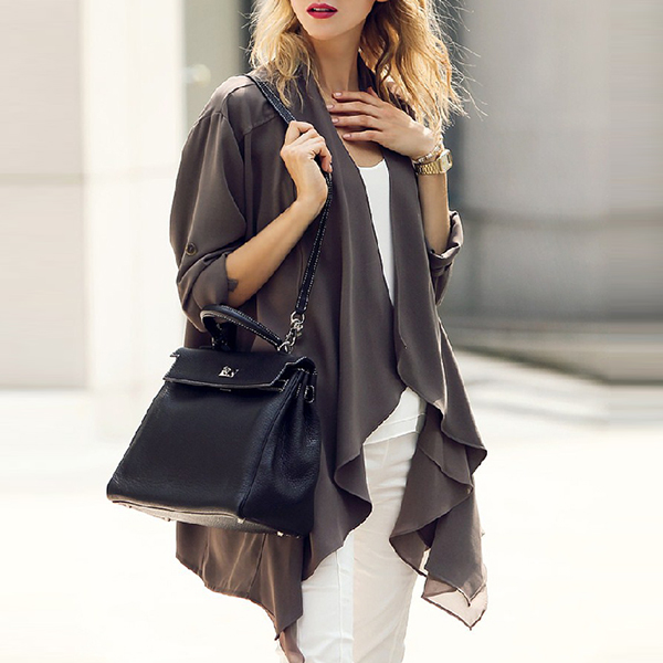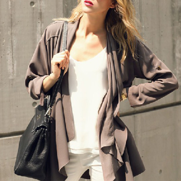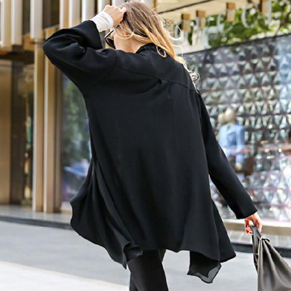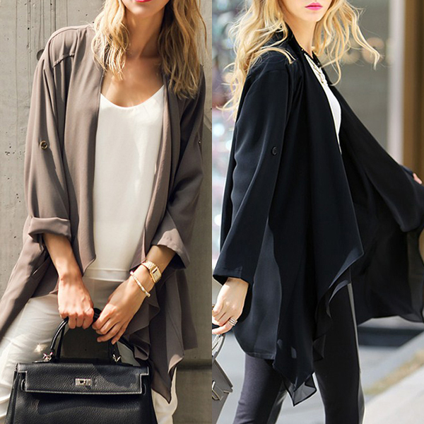 breezy chiffon fabric,with long sleeve and an irregular hem design,this chiffon cardigan can keep you cozy yet stylish.