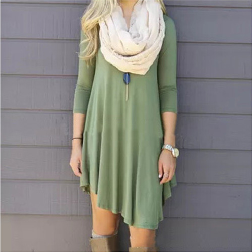 a loose silhouette and an irregular hem,can give you a stylish look. Adding a stunning necklace around