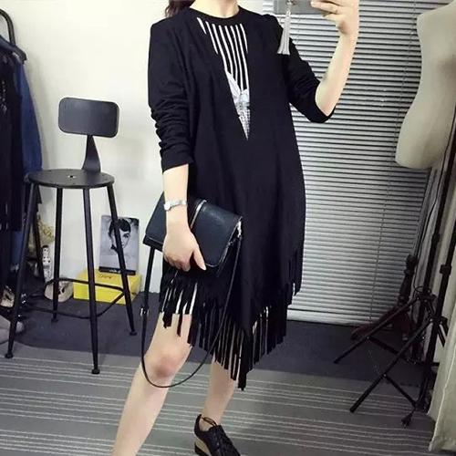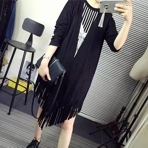 fringed hem design, it's chic and stylish. Its slightly longer length makes it an ideal pair it with leggings.
