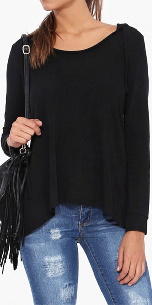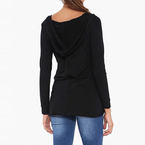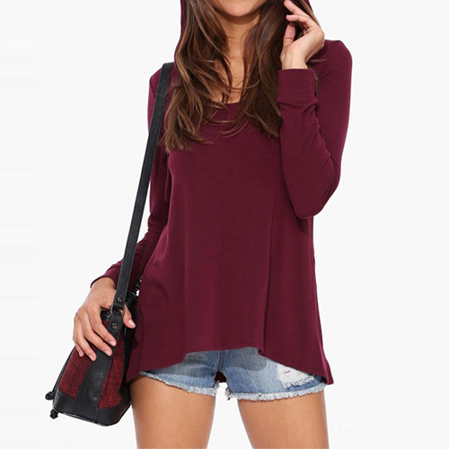 Solid color style,completed with long sleeve,irregular hem and hooded design,chic and stylish.