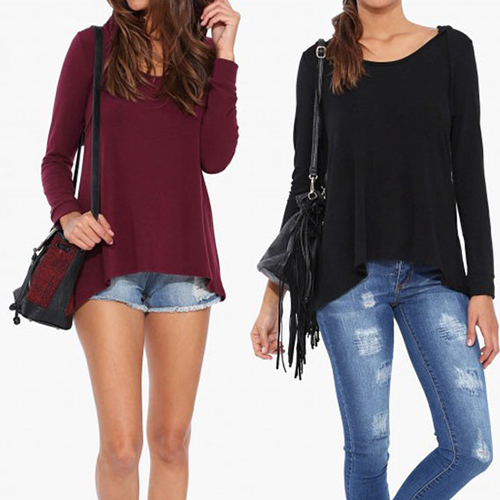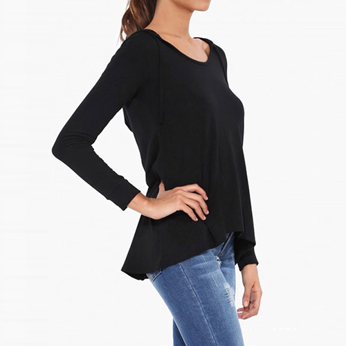 Fashion Solid Color Long Sleeve Irregular Hem Hooded T-shirt