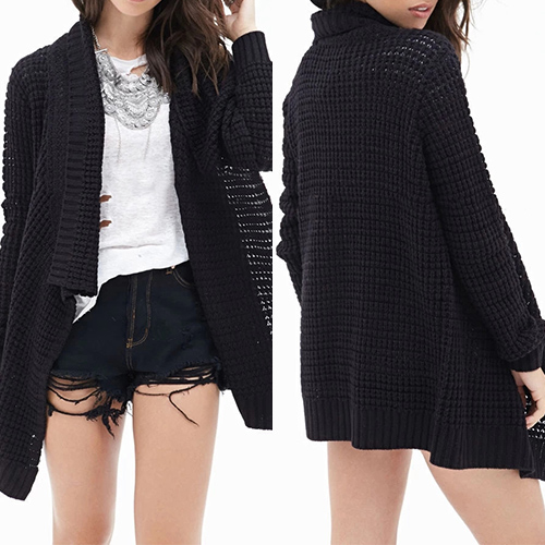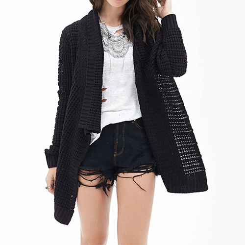 Elevate your chic appeal with this long sleeved knit cardigan. Solid color style,and its irregular design