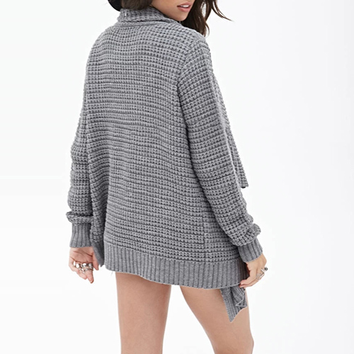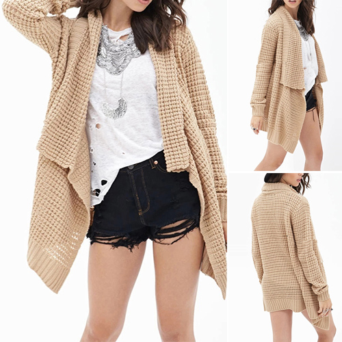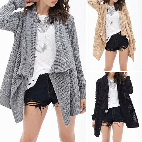 Fashion Solid Color Long Sleeve Irregular Knit Cardigan