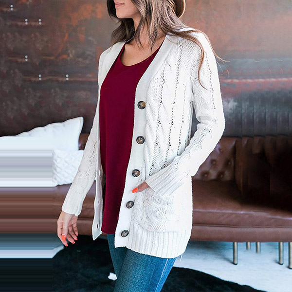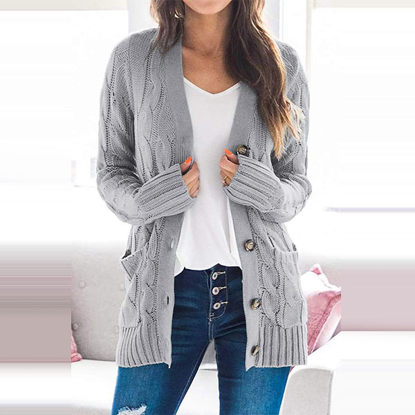 This comforting knit cardigan offers the perfect transitional layer from the hot days to cold days. Solid color style,finished with long sleeve and front-button design,simple and classic in design style,but it can keep you warm and comfy as well as offer you different matching styles.