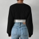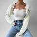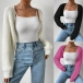 Fashion Solid Color Long Sleeve Knitted Crop Cardigan