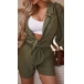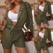 Fashion Solid Color Long Sleeve Knotted Hem Top + Shorts Two-piece Set