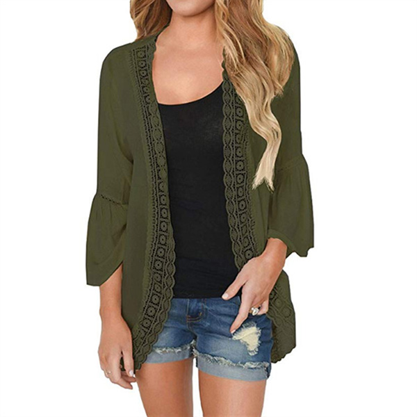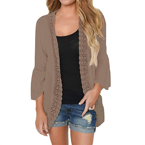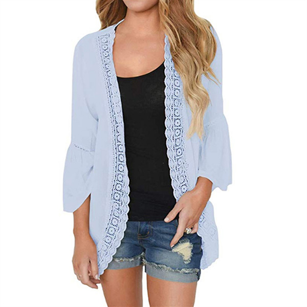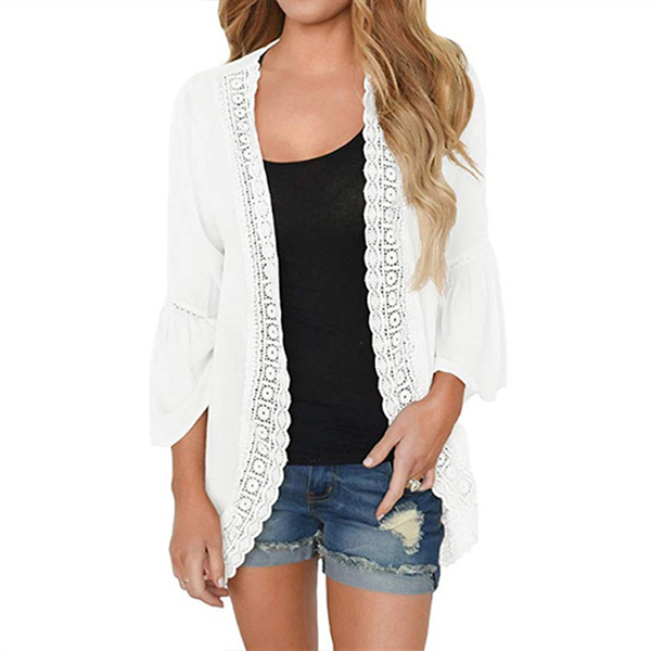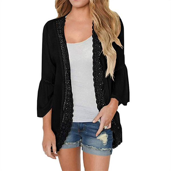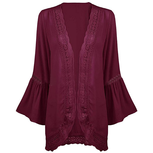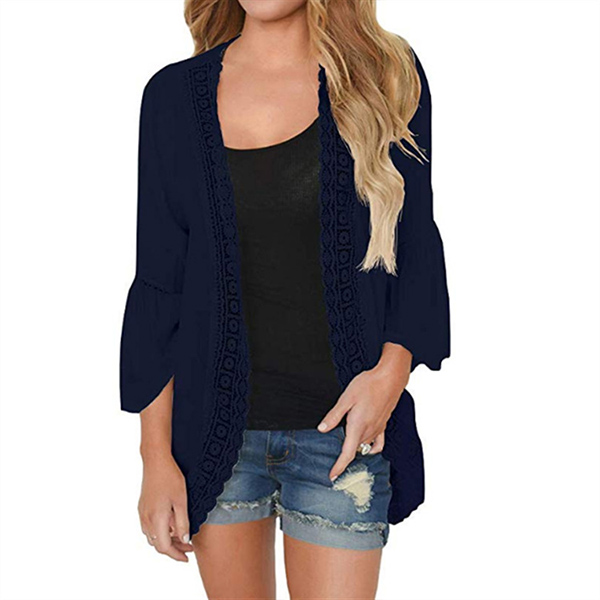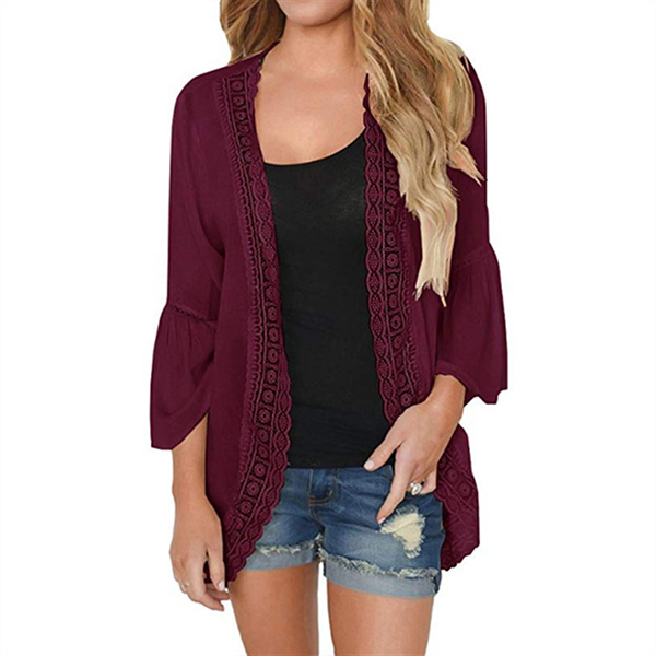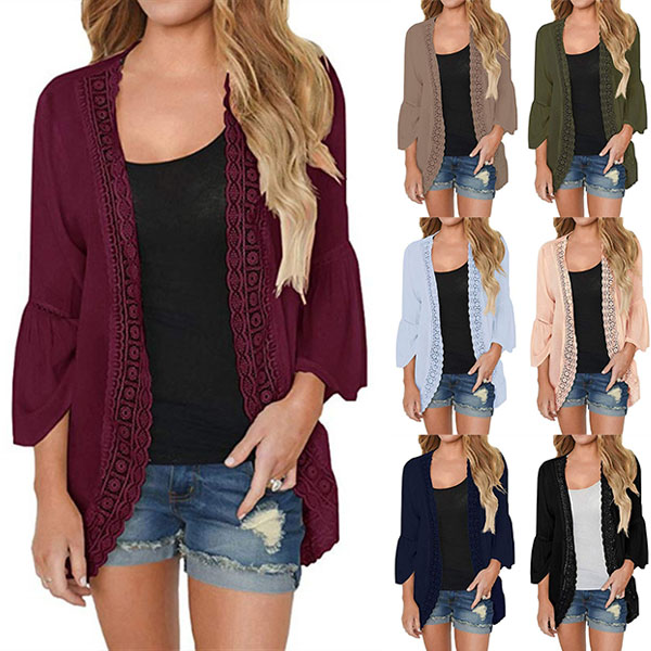 When you feel a little cold at the air-conditioned room,this chiffon cardigan can be your perfect partner. Solid color style,the lace spliced design makes this piece look more attractive. It is also perfect fit for the sunny summer days when you wanna go out. Different colors fro your optional.