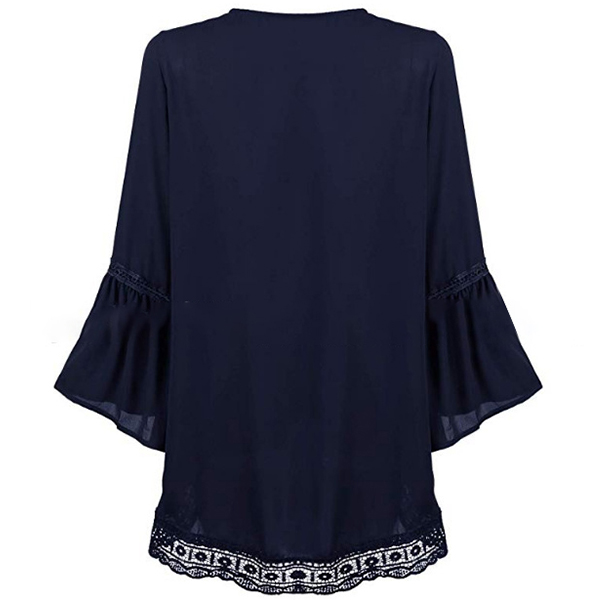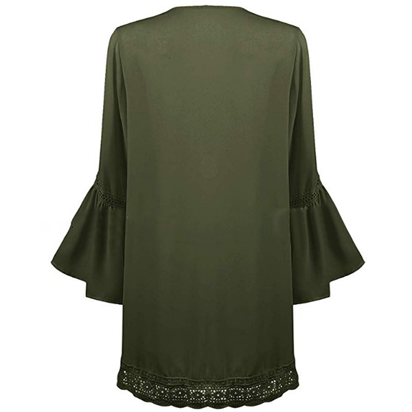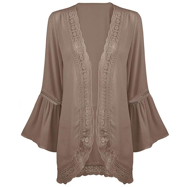 Fashion Solid Color Long Sleeve Lace Spliced Chiffon Cardigan