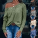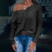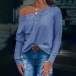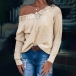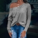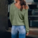 Fashion Solid Color Long Sleeve Lace Spliced V-neck T-shirt