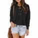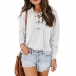 Fashion Solid Color Long Sleeve Lace-up Hooded T-shirt