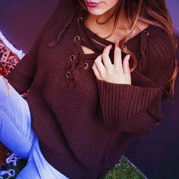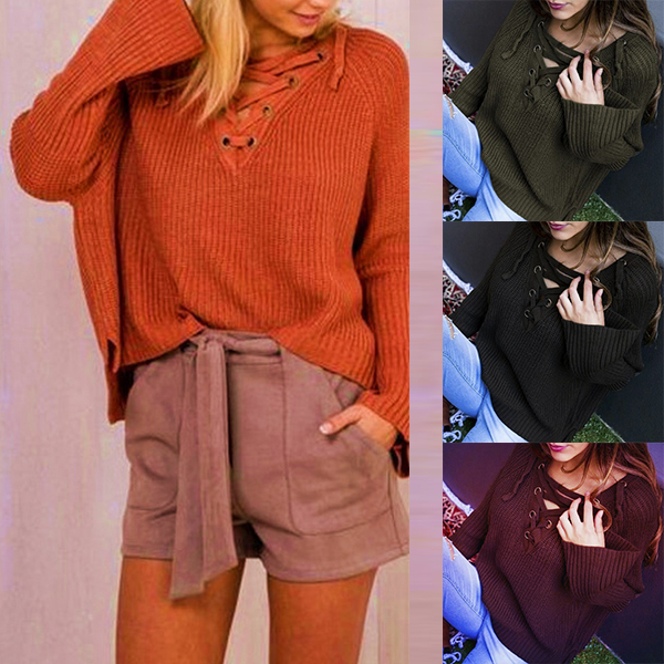 this one can bring you more is style. Solid color style,completed with long sleeve,lace-up v-neck,a high-low hem and a loose