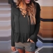 Brighten up your image with this solid color piece. Designed with long sleeve,lace-up v-neck and a ruffle hem,