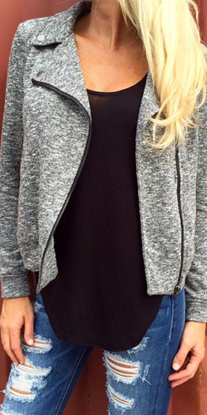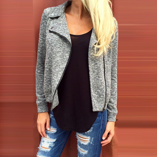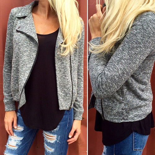 Solid color style,with long sleeves,lapel and front zipper closure. Simple but casual,