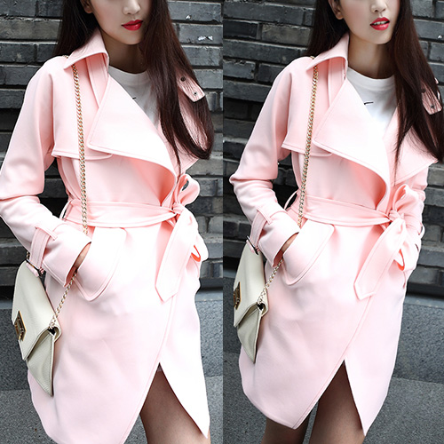 Featuring solid color, long sleeve and two lapels design makes you more stylish. In addition,with a belt, tie it looks