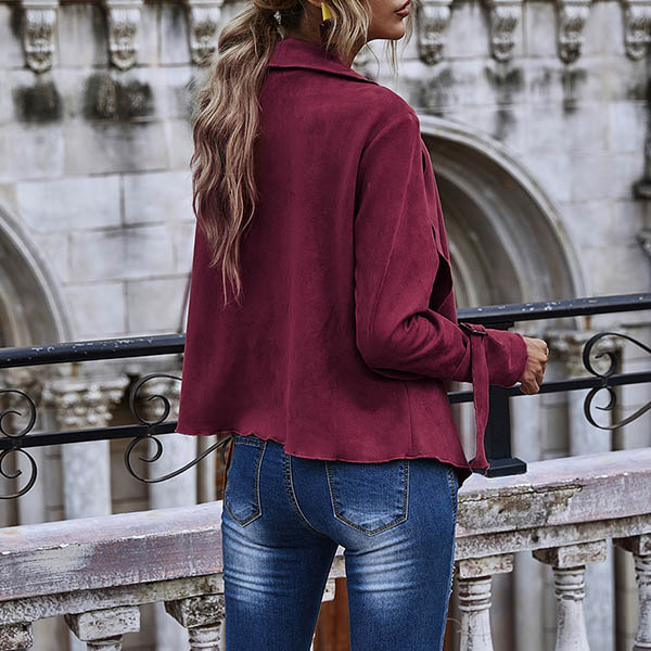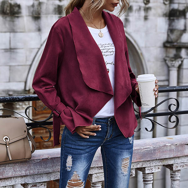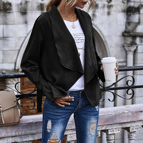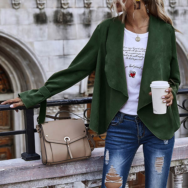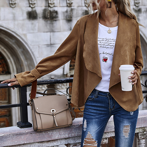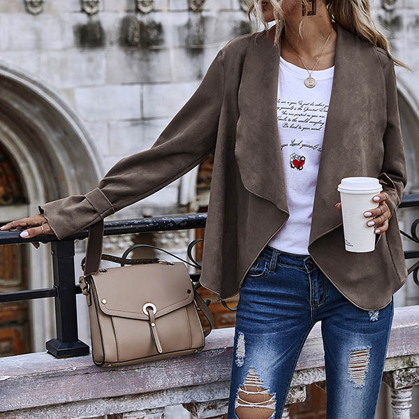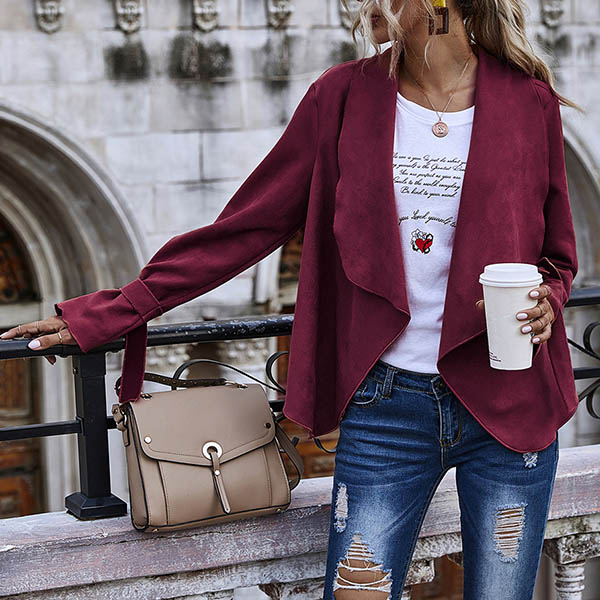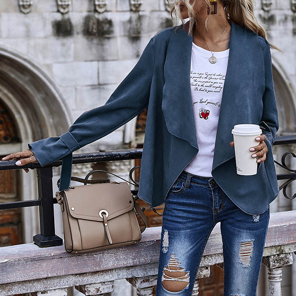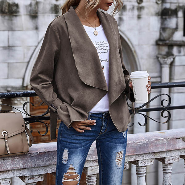 When the days get a little cold,this cardigan is worth to arouse your attention. Solid color tone design makes it look simple yet generous,while the big lapel design will further enhance its charm. It not only can keep you feeling warm,but also can be matched with different style outfits. So why not take interest in it?