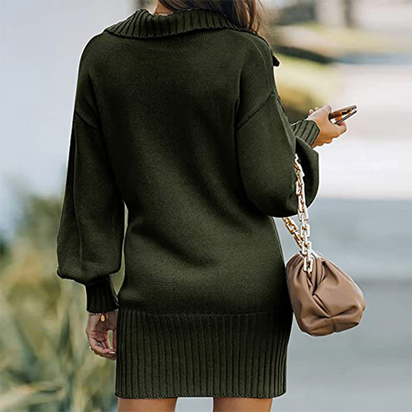 Fashion Solid Color Long Sleeve Lapel Slim Fit Knit Dress