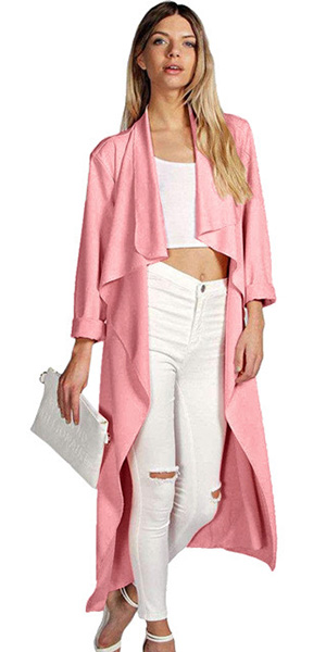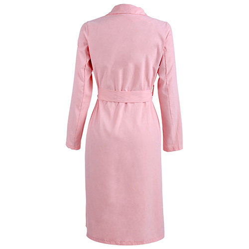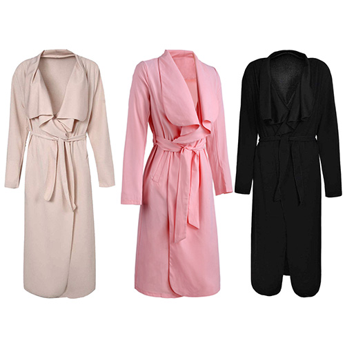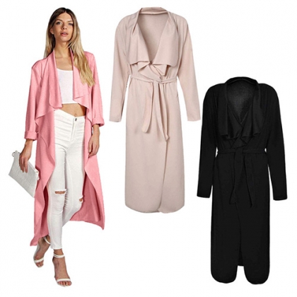 Solid color style,with long sleeve and lapel design. The best part: its waist strap design can give you a fit silhouette.