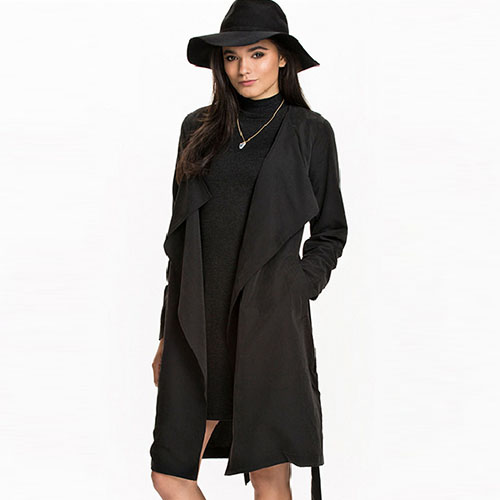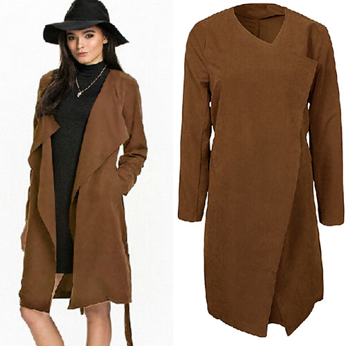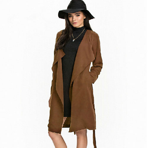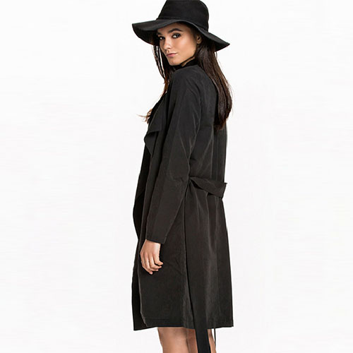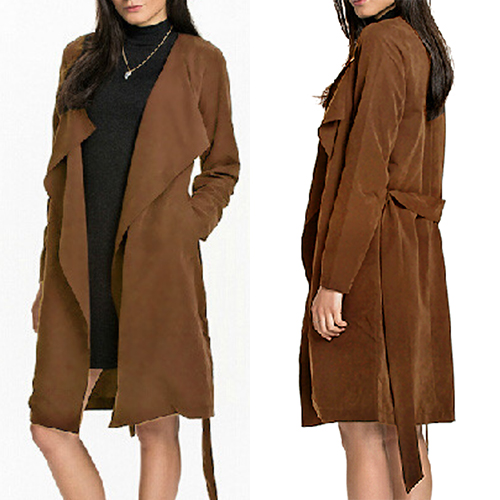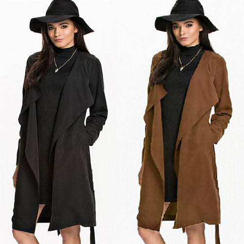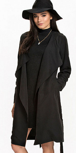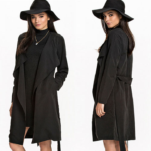 pockets, and a belted waist. Complete with a longline silhouette, this trench coat is the