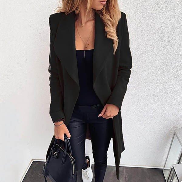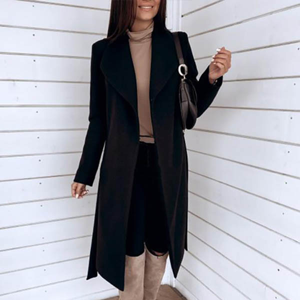 Fashion Solid Color Long Sleeve Lapel Woolen Coat