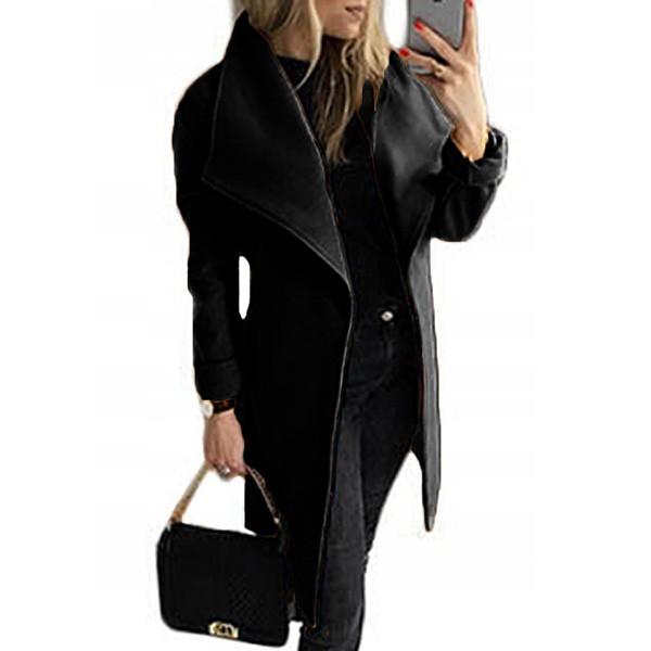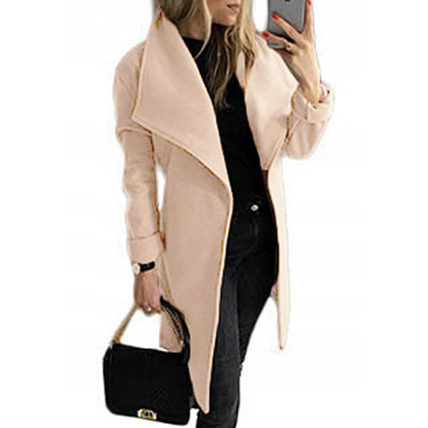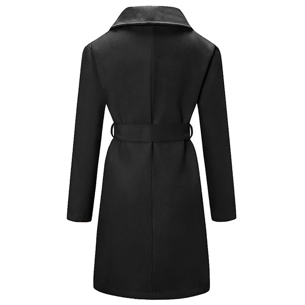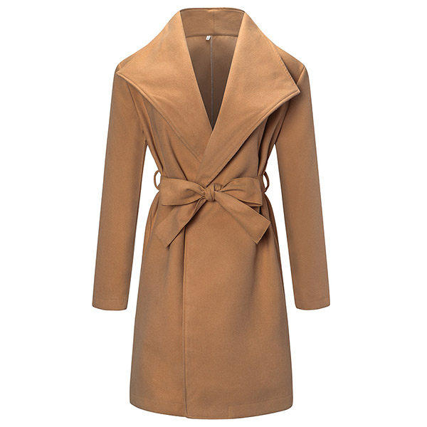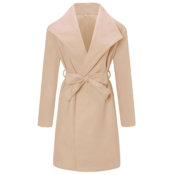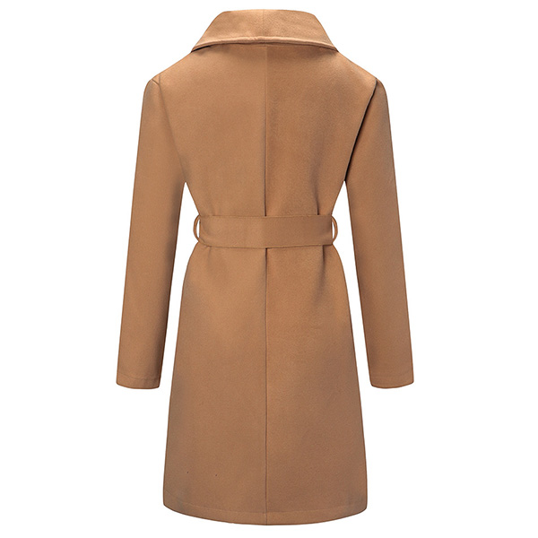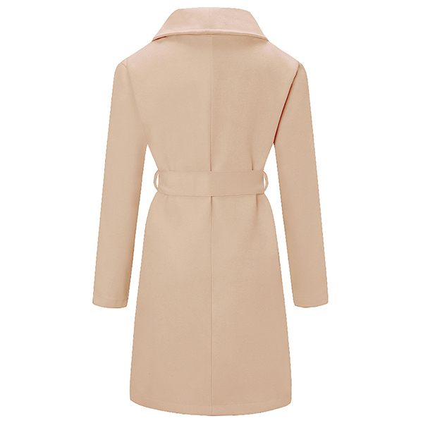 Fashion Solid Color Long Sleeve Lapel Woolen Coat with Waist Strap(It falls small)
