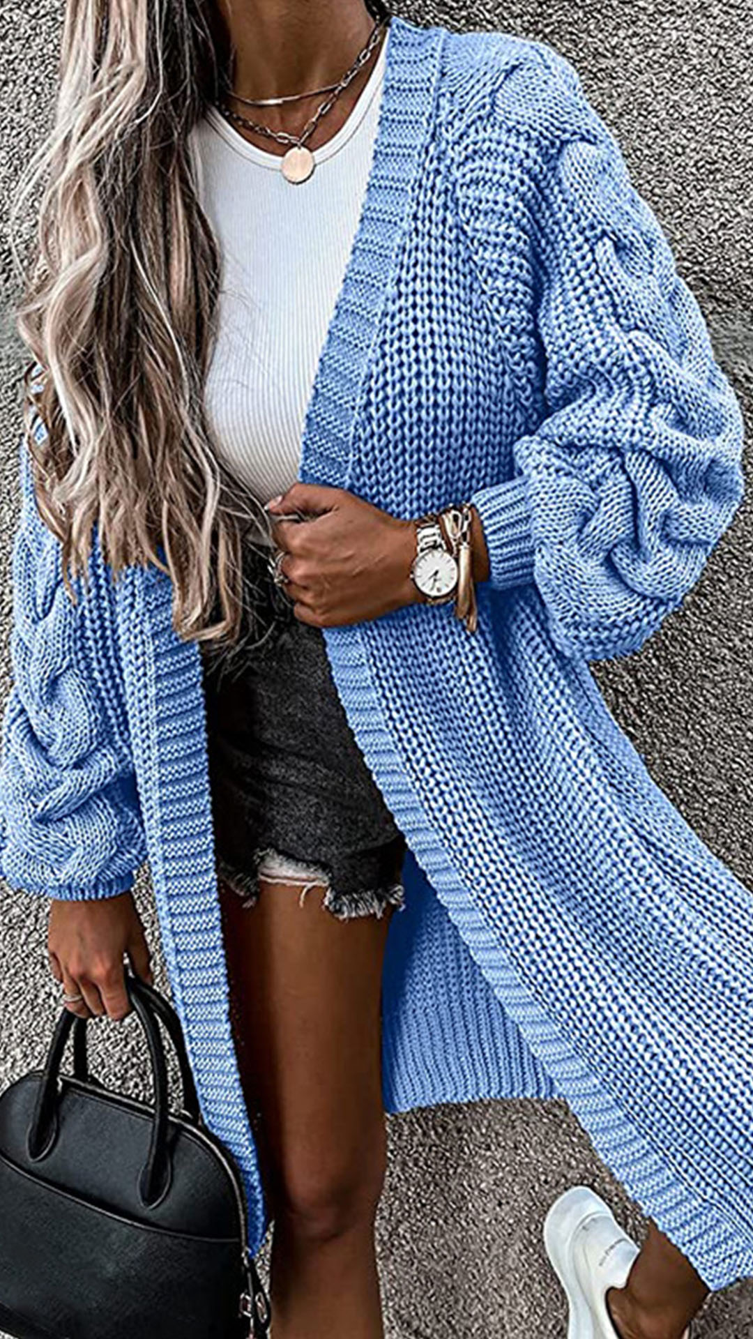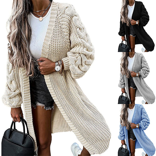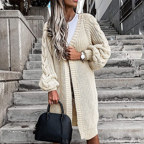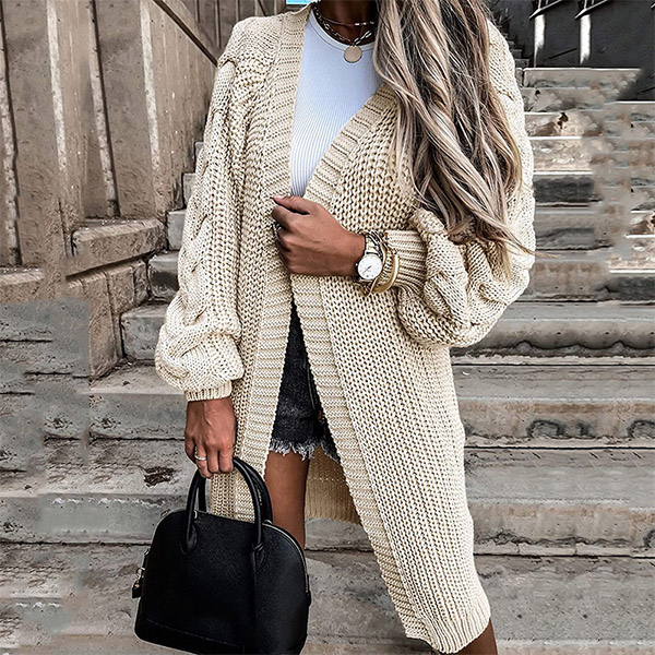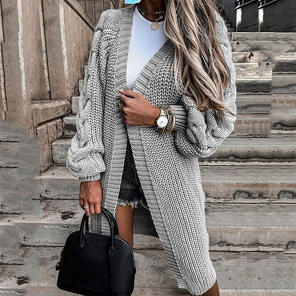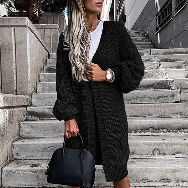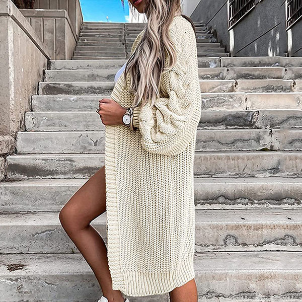 Fashion Solid Color Long Sleeve Loose Knit Cardigan