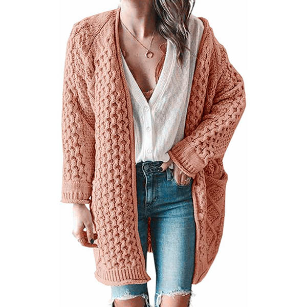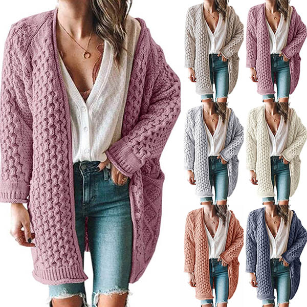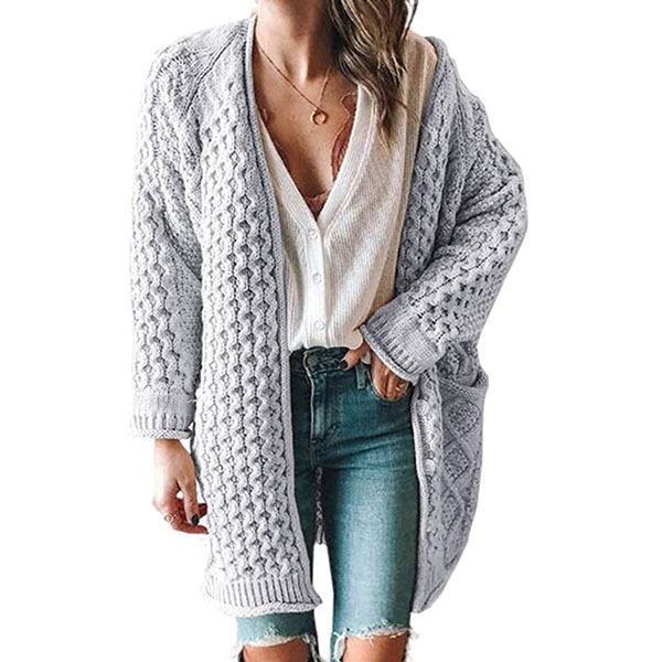 Fashion Solid Color Long Sleeve Loose Knit Cardigan