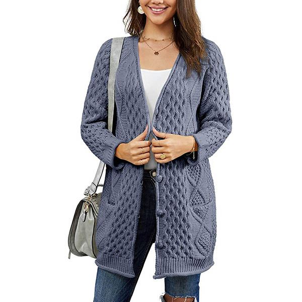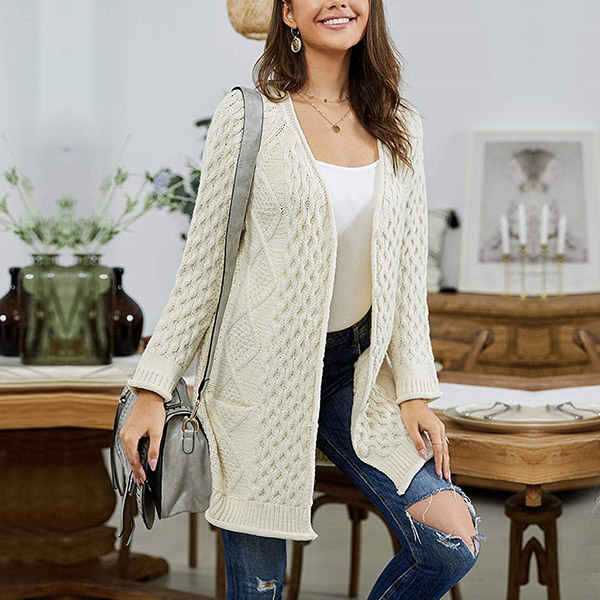 The function of knit cardigan is just to keep you warm?The answer is absolutely NO.You can still be charming by wearing this piece of knit cardigan.Different knitting techniques can be displayed on this piece,which make it distinctive and attractive.Add it to your wardrobe right now!