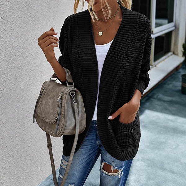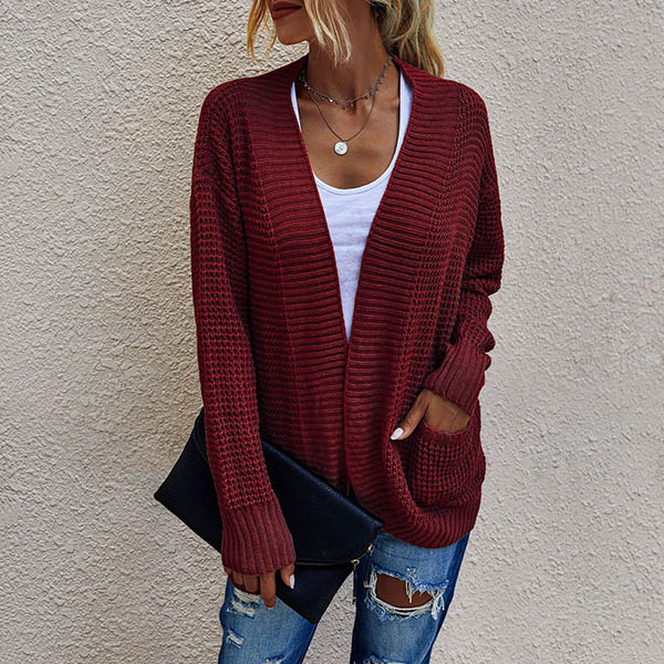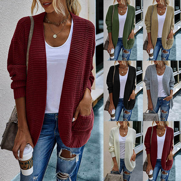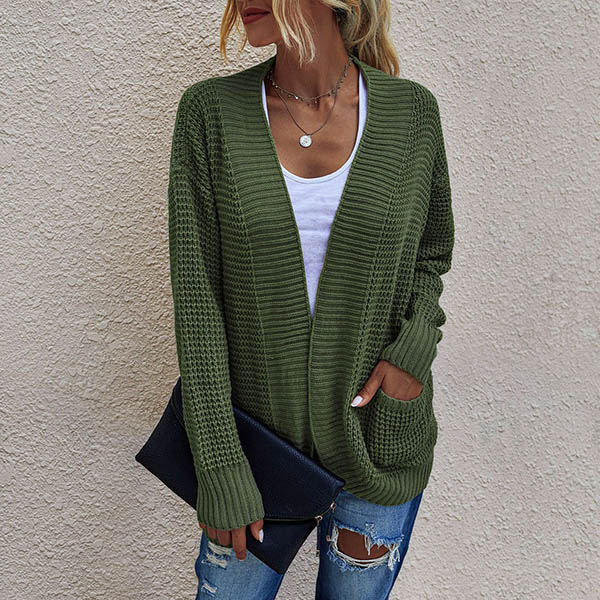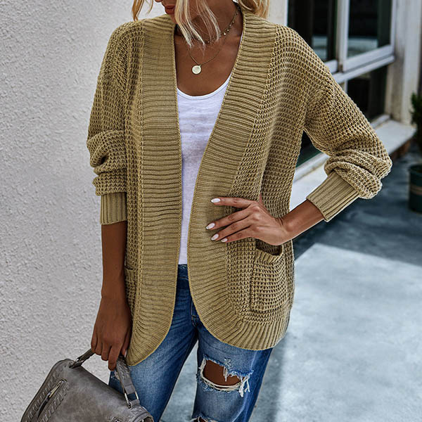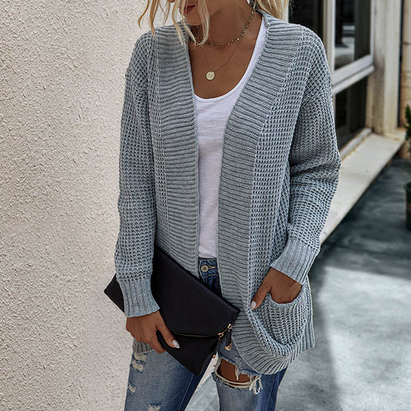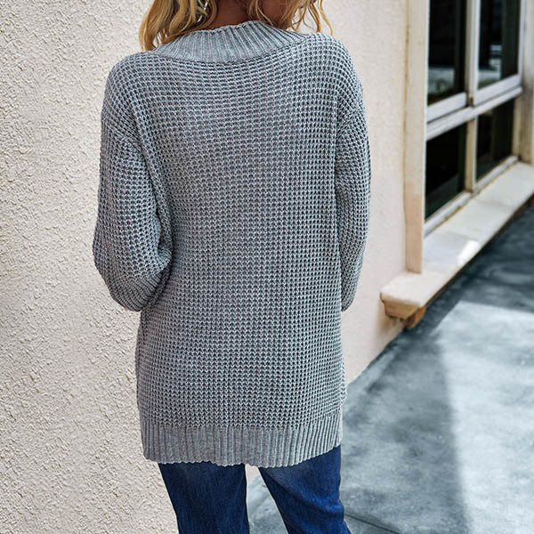 Fashion Solid Color Long Sleeve Loose Knit Cardigan