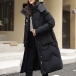 Fashion Solid Color Long Sleeve Mock Neck Detachable Hooded Longline Quilted Coat for Women