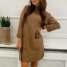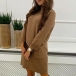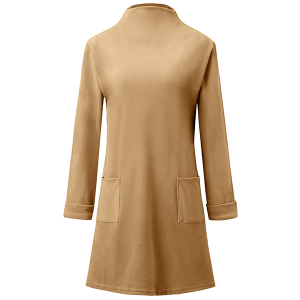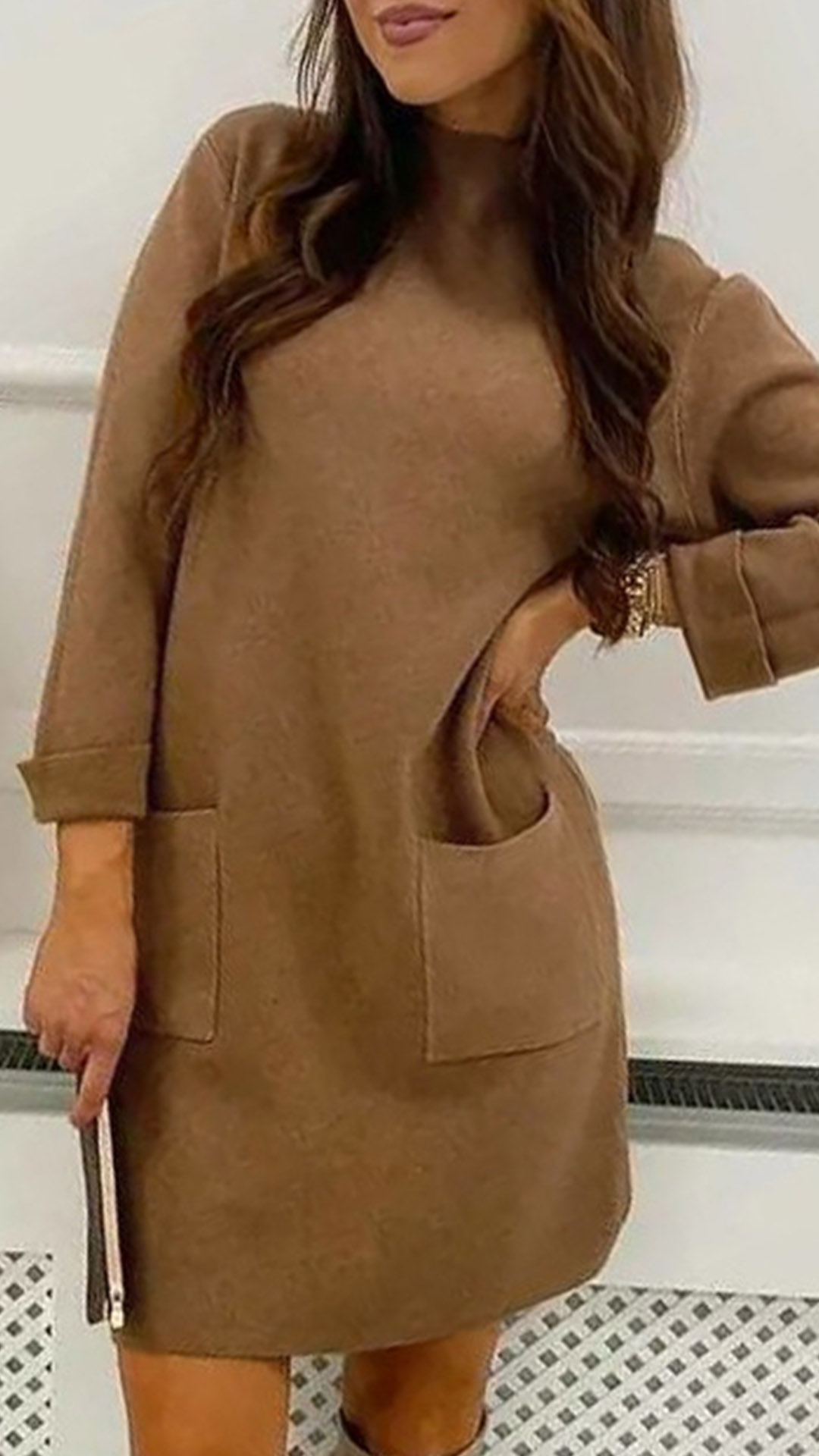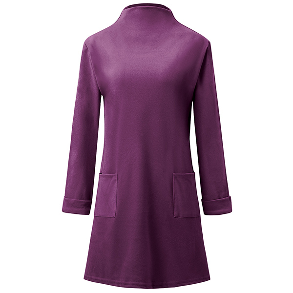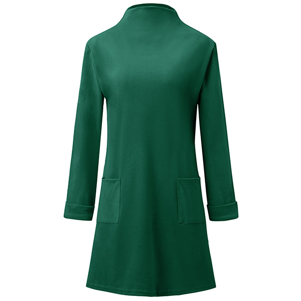 Fashion Solid Color Long Sleeve Mock Neck Front-pocket Dress