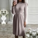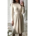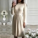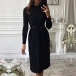 Fashion Solid Color Long Sleeve Mock Neck Pleated Hem Tie-belt Dress
