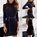 Thanks to the flattering blakc tone and fit silhouette design,your slender figure can have a full display in this dress. Crafted from soft and breathable fabric,with long sleeve,mock neck and chest pockets design,this dress is just the thing you need when the days get a little cold.