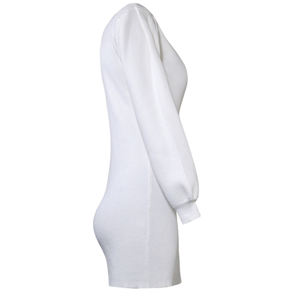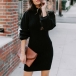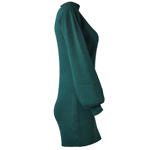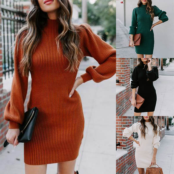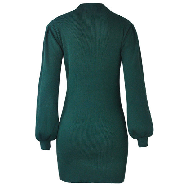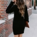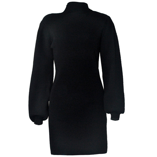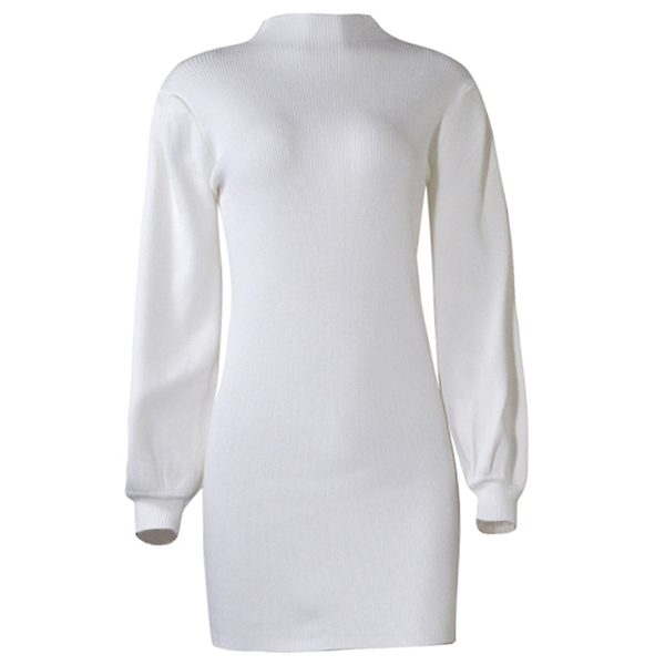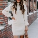 Fashion Solid Color Long Sleeve Mock Neck Slim Fit Knit Dress