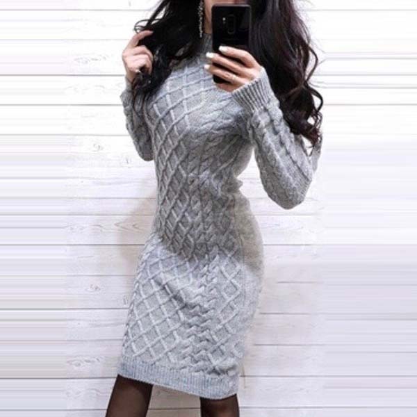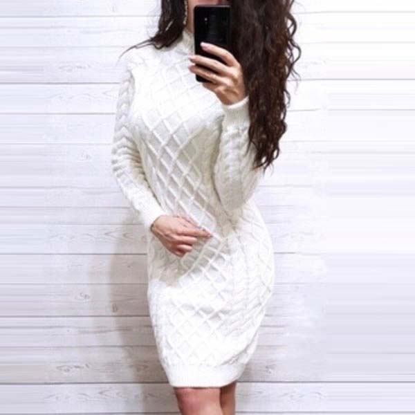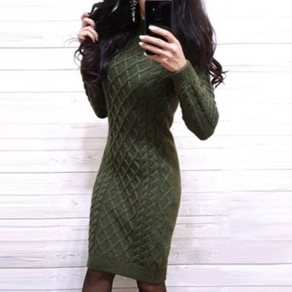 A winter essential - add this sweater dress to your wardrobe essential and you won't be disappointed. Solid color style,finished with long sleeve,mock neck and a fit silhouette,this piece can keep you warm as well as demonstrate your slender figure. You can match with your overcoat and ankle boots for a charming winter look.