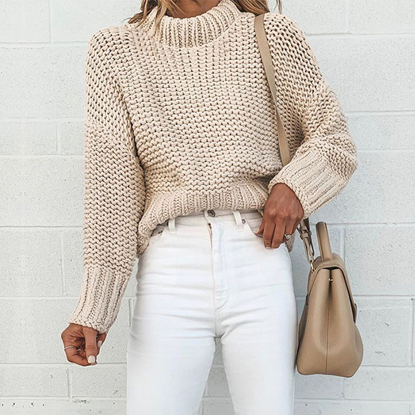 Make your winter wardrobe more complete by adding this sweater. Solid color style,finished with long sleeve and mock neck design,this piece bears a simple design style,but it can keep you warm as well as offer you different matching opportunities.