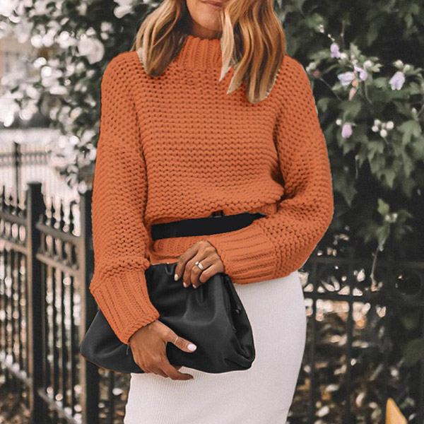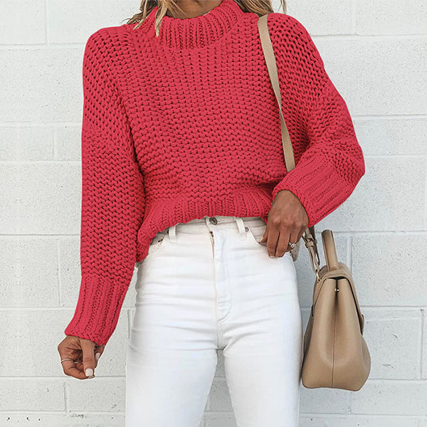 Fashion Solid Color Long Sleeve Mock Neck Sweater