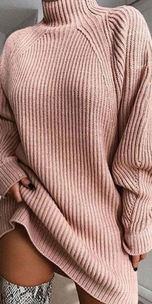 When the days get cold,the sweater dress would be a wardrobe staple since it can keep you warm as well as maintain your style,that's why we suggest you this sweater dress! Boasts a solid color,with long sleeve,mock neck and a clean silhouette,simple but stylish. We think matching with your over-the-knee boots would make you look charming and beautiful.