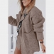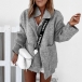 Fashion Solid Color Long Sleeve Notched Lapel Big-pocket Knit Cardigan Coat