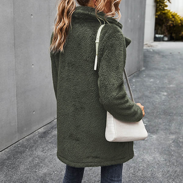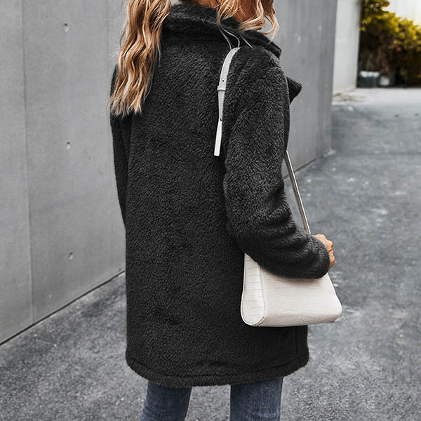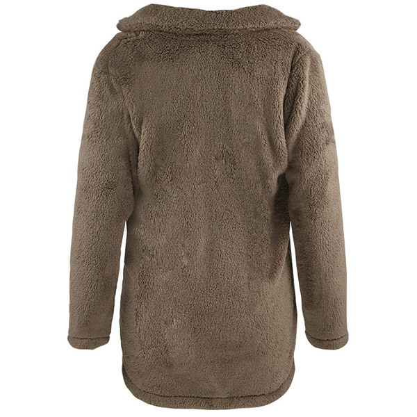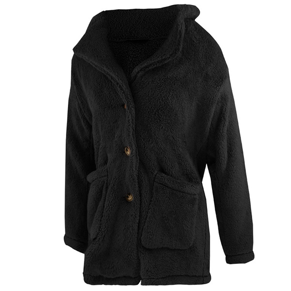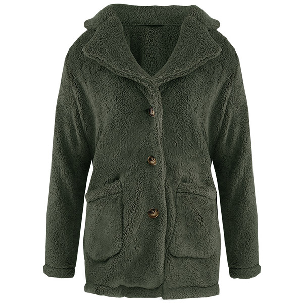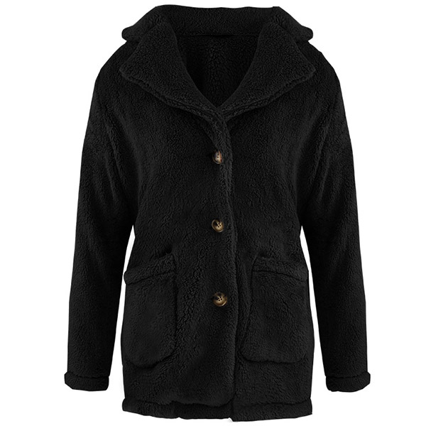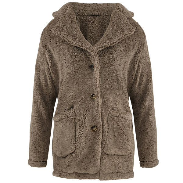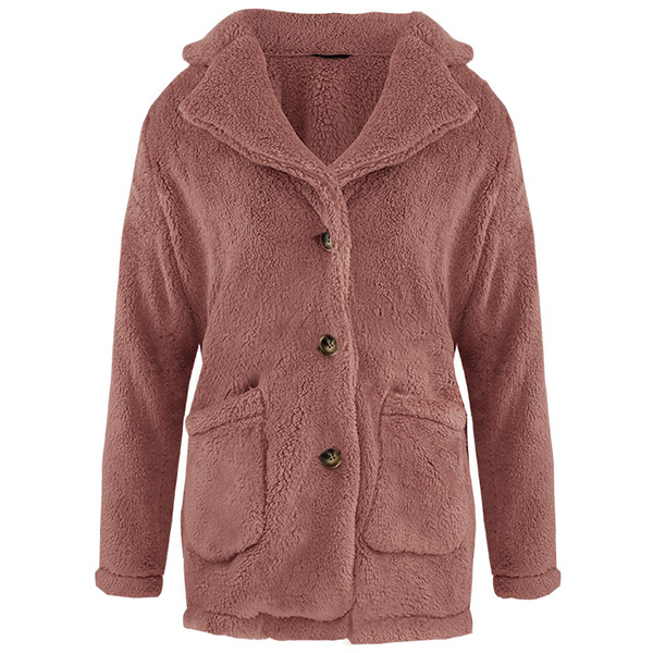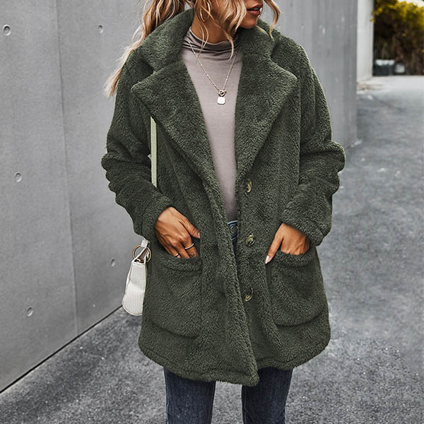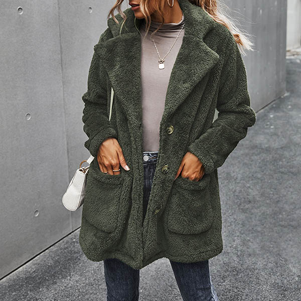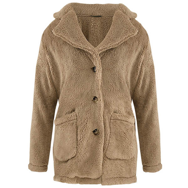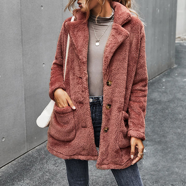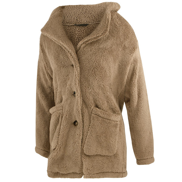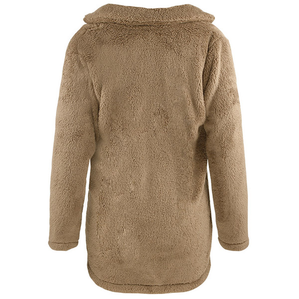 Fashion Solid Color Long Sleeve Notched Lapel Plush Coat