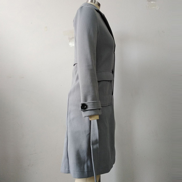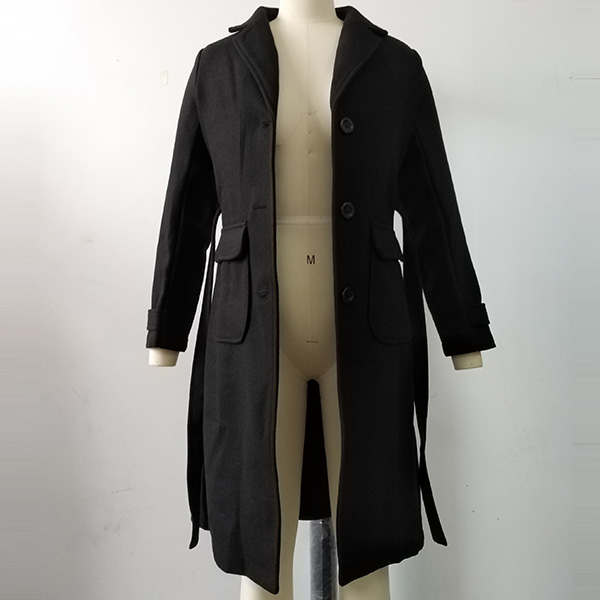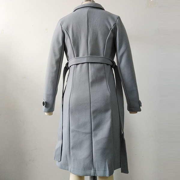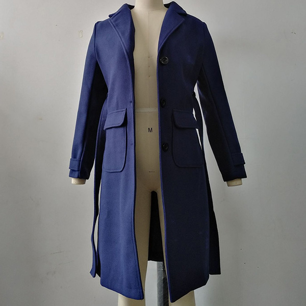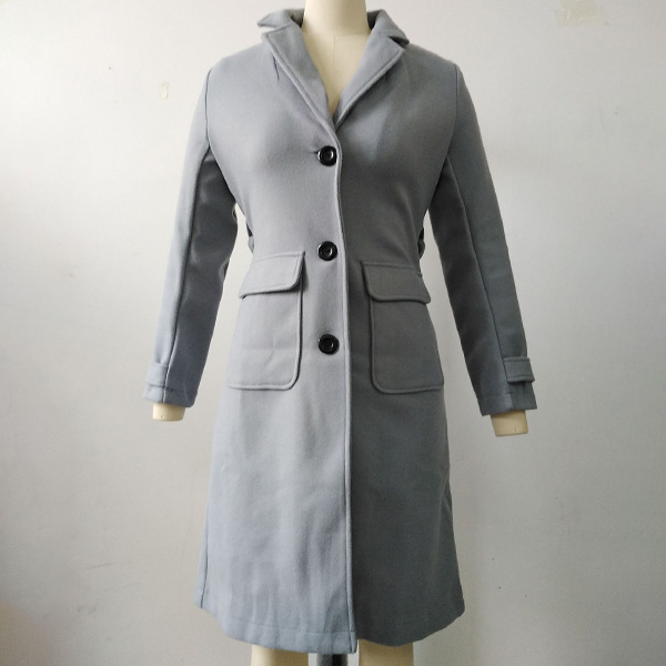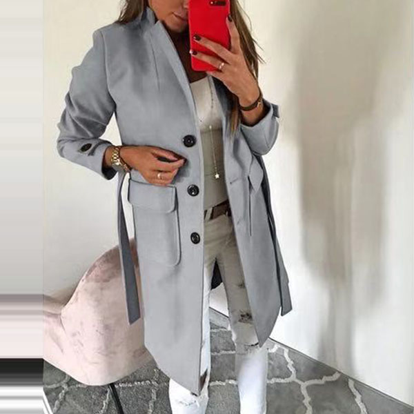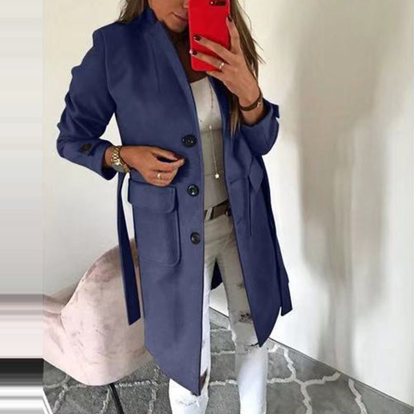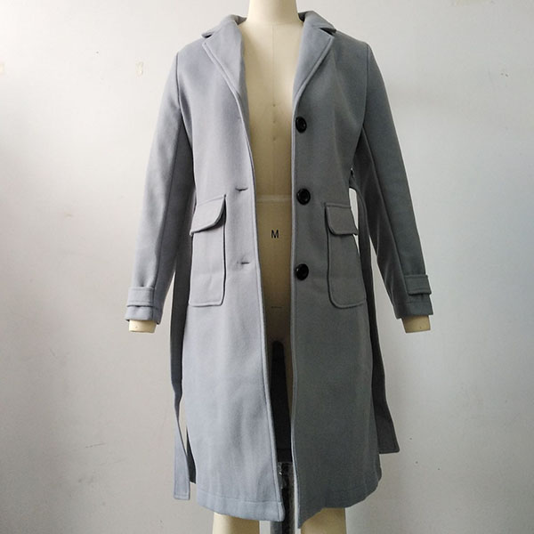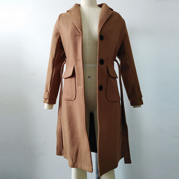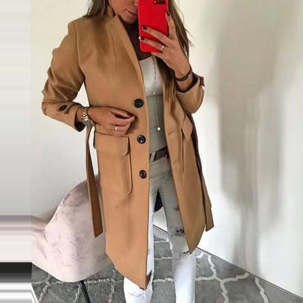 Fashion Solid Color Long Sleeve Notched Lapel Wolen Coat
