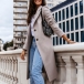 Fashion Solid Color Long Sleeve Notched Lapel Woolen Coat
